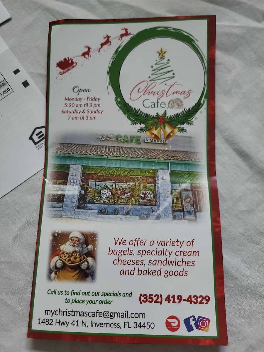 At Christmas Cafe, located in the heart of Inverness, FL, the menu is a delightful blend of festive charm and culinary creativity. Known for its homemade bagels and warm, inviting atmosphere, this cafe creates an enchanting dining experience for families and friends alike.